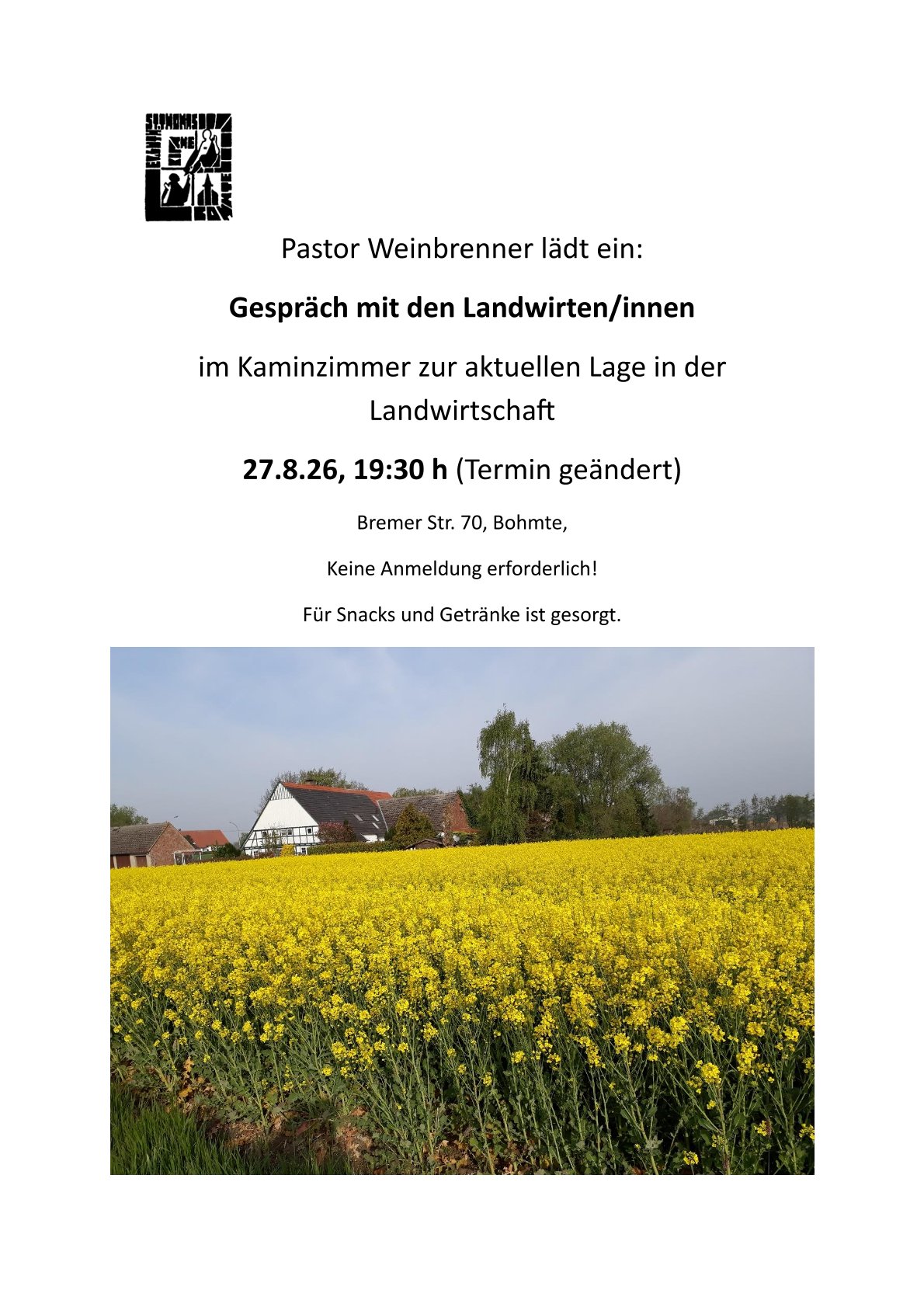 Einladung zur Gemeindefahrt 2026 Dieses Jahr geht es nach Wildeshausen Herzliche Einladung zu unserer diesjährigen Gemeindefahrt am 13. ... Nachricht 18. März 2026