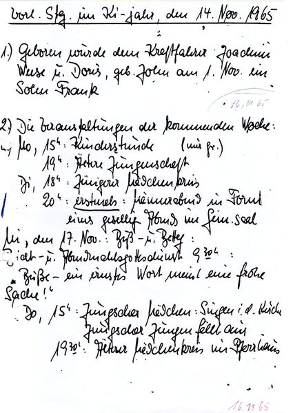Zu unserem vierzigjährigen Jubiläum war Altbischof Hirschler anwesend. Am fünfundvierzigjährigen Jubiläum nahm Landespastor Henning Busse teil, und zum fünfzigjährigen Jubiläum war Regionalbischöfin Birgit Klostermeier anwesend. Am 55 jährigen Jubiläum war Corona zu Besuch.