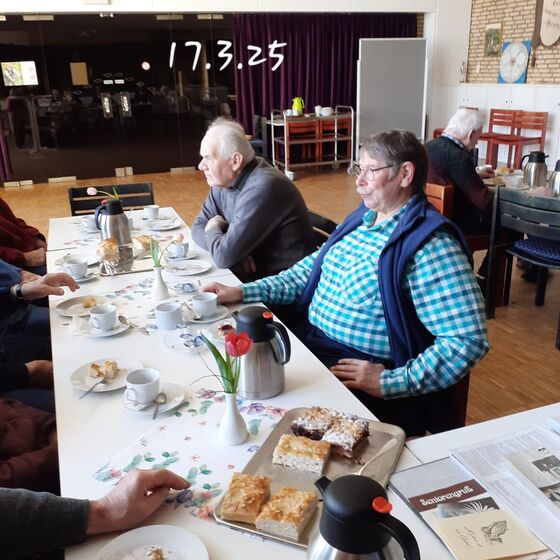 die Männer im ev. Gemeindehaus zu einem gemütlichen Nachmittag mit Kaffee und Kuchen. Sabine hatte schon die Tische gedeckt und Kaffee gekocht. Nachdem alle den Kuchen und Kaffee genossen hatten, wurde zunächst unseres verstorbenen Mitgliedes Ewald Brockmeier und unserer verstorbenen Lektorin Heike Wittenbrink gedacht. Nach diesen traurigen Worten gratulierten wir mit einem Ständchen unseren Geburtstagskindern Ralph Delin und Ernstfried Enax.