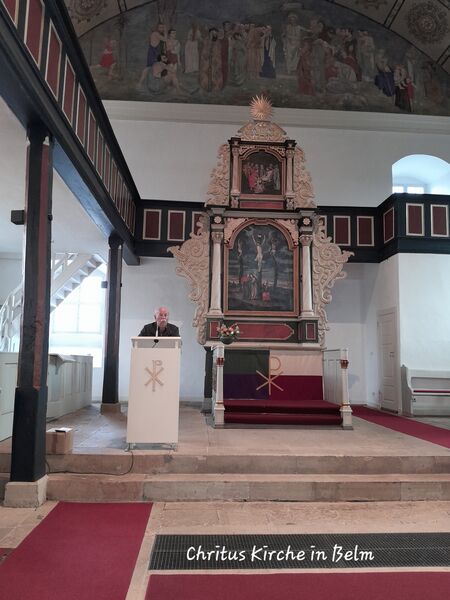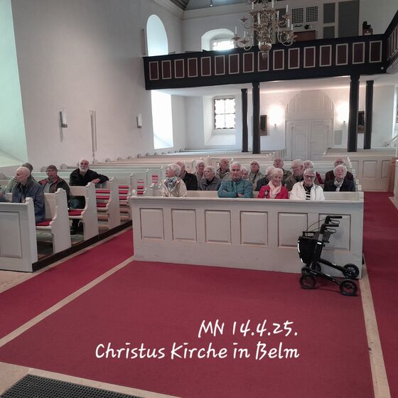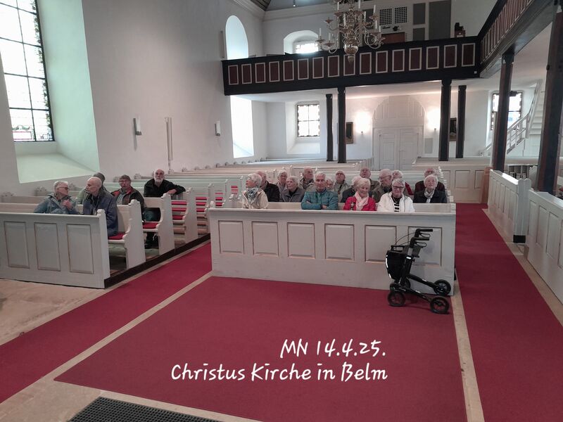 Am Montag, dem 14. April, trafen sich die St. Thomas Männer mit ihren Partnern und Freunden um 14.30 Uhr am ev. Gemeindehaus um mit einem V L O Bus nach Belm zu fahren. Dort fand zunächst die Besichtigung der Christus Kirche auf dem Programm. Herr Braune, ehemaliges Kirchenvorstandsmitglied, erläuterte uns die Geschichte dieses Gotteshauses. Im Jahr 1650 wurde Belm für katholisch erklärt, obwohl 95 % der Belmer lutherischen Glauben hatten. Lutherische Gottesdienste waren verboten! Erst, nach dem Frankreich in den Koalitionskriegen halb Europa besiegte und Belm unter napoleonischer Herrschaft war, änderte sich dieses. Als 1811 das Fürstbistum Osnabrück in das französche Kaiserreich eingegliedert wurde, setzte der Garnisonsprediger Lasius seine ganze Macht für den Bau einer evangelischen Kirche in Belm ein. Napoleon erlaubte 1812 aus seinem Hauptquartier in Moskau den Belmern eine evangelische Kirche zu bauen. Diese Erlaubnis kam erst 1813 in Belm an. Als Napoleon im gleichen Jahr bei der Schlacht bei Leipzig unterlag, fiel das Fürstbistum Osnabrück an das Haus Hannover (Georg III . König von Hannover), und die Belmer befürchteten, dass die alten Gesetze wieder in Kraft treten, welches aber nicht geschah. Dem Bau einer evangelischen Kirche stand also nichts mehr im Wege und 1919 freute sich Belm über den Neubau.